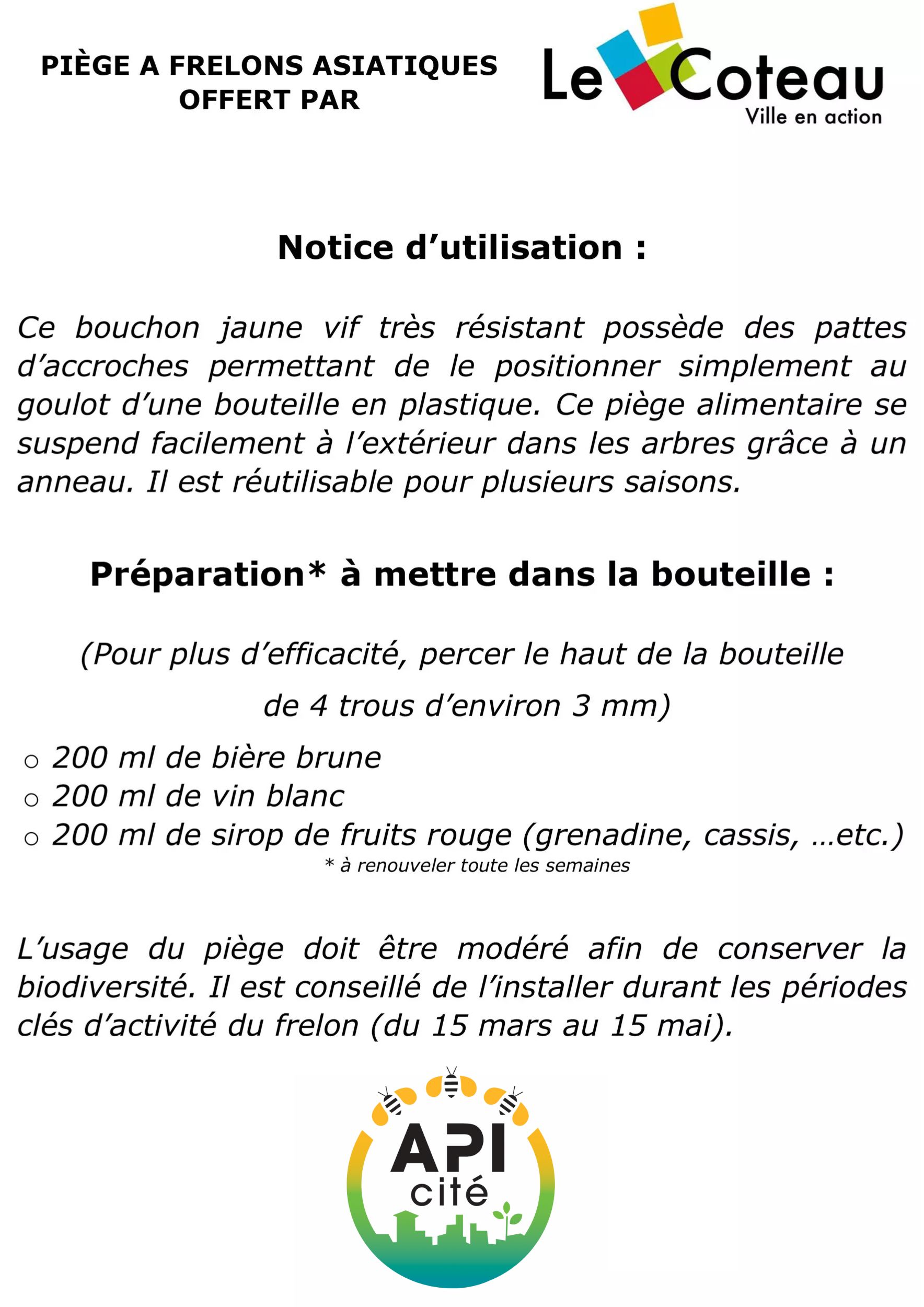 Comme l’an passé, le service Espaces verts renouvelle son initiative en offrant gratuitement à partir du 10 février, un piège accompagné d’une fiche de conseils aux 60 premiers foyers costellois possédant une maison individuelle avec jardin et en faisant la demande.